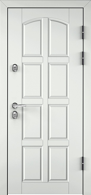 Эта классическая белая входная дверь с прямоугольниками №29 привнесет элегантность и надежность в ваш дом. Ее конструкция состоит из профильных труб 50х25 мм и листа металла толщиной 2 мм, что гарантирует высокую прочность. Внешняя и внутренняя отделка из МДФ придает двери стильный вид, а устойчивость к повреждениям позволяет сохранить первоначальный облик на долгие годы. Благодаря двухконтурному резиновому уплотнителю, дверь эффективно защищает от холода и шума. Замки Просам и Мосрентген с тремя ригелями обеспечивают надежную защиту от несанкционированного доступа. Кроме того, в эту модель можно добавить стеклопакет, зеркало или кованые элементы, адаптируя дверь под любые дизайнерские решения. Классическая белая входная дверь в частный дом с прямоугольниками №29 от производителя: быстрое изготовление и монтаж в Боровске, индивидуальные размеры, широкий выбор материалов и фурнитуры, официальная гарантия до 10 лет.