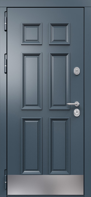 Дверь стальная МДФ эмаль №563 — это удачное сочетание надежной металлической основы и аккуратной декоративной отделки. Каркас из профильной трубы и стальной лист толщиной 2 мм обеспечивают прочность и устойчивость к взлому, а ребра жесткости повышают общий ресурс эксплуатации. Важной особенностью модели является наличие терморазрыва в коробке и полотне: конструкция эффективно препятствует промерзанию зимой, исключает появление конденсата и сохраняет тепло в помещении. Панели МДФ с ПВХ-покрытием, использованные с обеих сторон, защищены от влаги и мелких механических повреждений, благодаря чему дверь долго сохраняет привлекательный внешний вид. Два контура резинового уплотнителя дополнительно усиливают защиту от сквозняков и уличного шума. Такая дверь органично подходит для частных домов, квартир и офисов, сочетая в себе надежность стали и практичность современной отделки. Дверь стальная МДФ эмаль №563 от производителя: быстрое изготовление и монтаж в Боровске, индивидуальные размеры, широкий выбор материалов и фурнитуры, официальная гарантия до 10 лет.