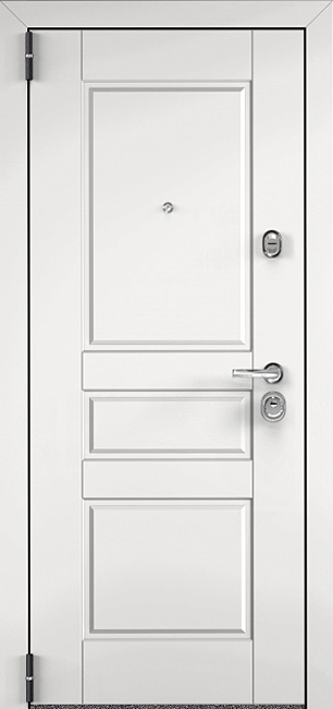 Белая металлическая дверь входная для дома №33 выделяется своим свежим и современным обликом. Универсальный белый цвет делает её уместной как в частном коттедже, так и в квартире или офисе, визуально добавляя простора и подчеркивая аккуратность фасада или интерьера. Конструкция двери основана на стальном листе толщиной 2 мм и усилена профильными трубами, что гарантирует надежность и устойчивость к нагрузкам. Важная особенность модели — наличие терморазрыва в полотне и коробке: благодаря этому дверь не промерзает в зимний период, исключается конденсат и сохраняется комфорт внутри помещения. Внешняя и внутренняя отделка выполнена из МДФ с ПВХ-покрытием, которое защищает поверхность от влаги и механических повреждений, сохраняя первозданный вид надолго. Два контура уплотнителя обеспечивают герметичность и дополнительную защиту от сквозняков. Эта дверь удачно сочетает эстетику и практичность, создавая надежный вход в любое жилище. Белая металлическая дверь входная для дома №33 от производителя: быстрое изготовление и монтаж в Боровске, индивидуальные размеры, широкий выбор материалов и фурнитуры, официальная гарантия до 10 лет.