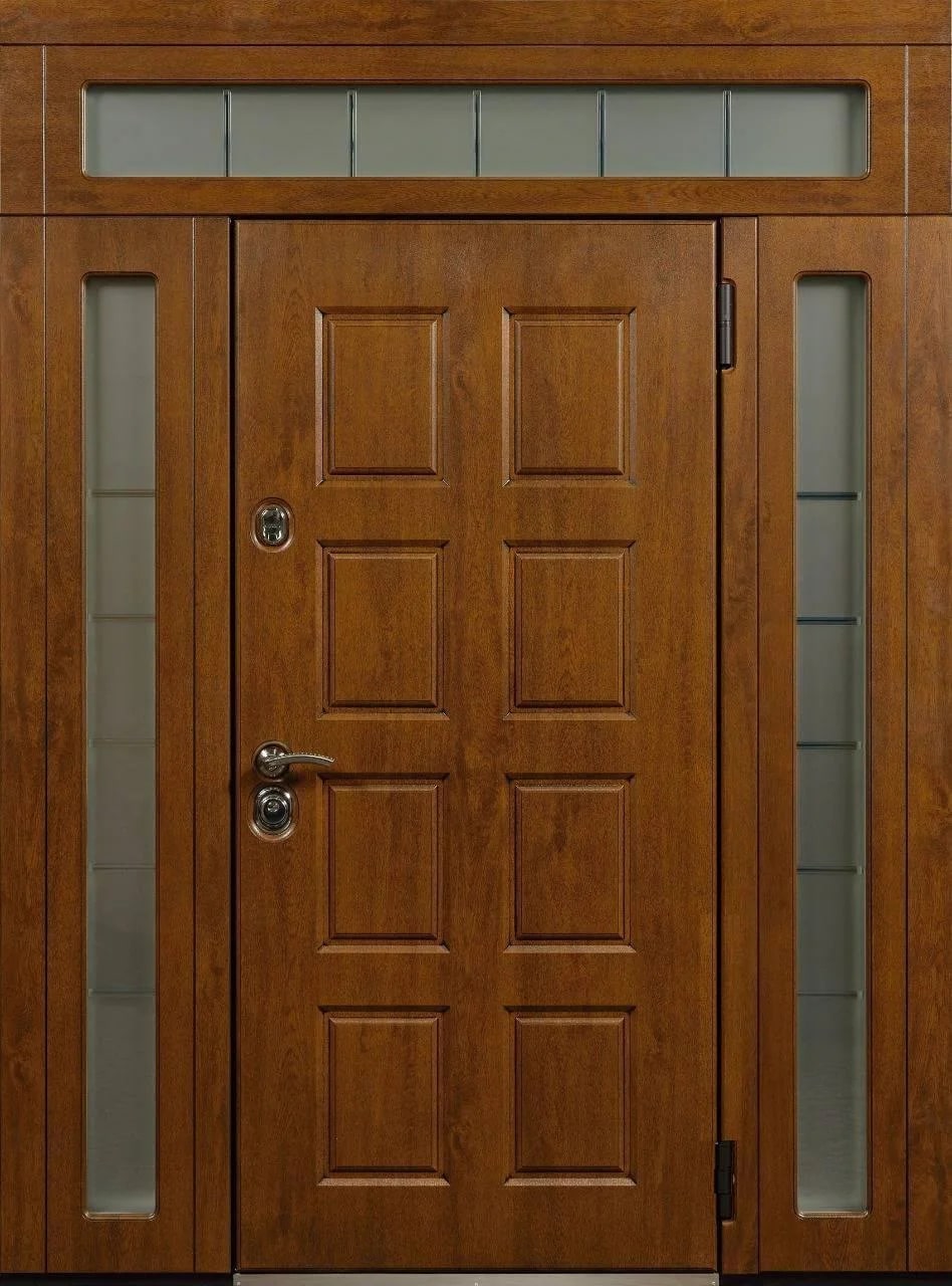 Элитная парадная дверь с фрамугой №4 станет не только защитой вашего дома, но и его визитной карточкой. Ее внешний вид, сочетающий плиту МДФ с ПВХ-покрытием, выглядит современно и гармонично, сохраняя стойкость к внешним воздействиям, таким как царапины и вмятины. Конструкция, выполненная из профильной трубы 50х25 мм и металлического листа толщиной 2 мм, гарантирует долговечность и прочность. Благодаря фрамуге дверь пропускает свет, добавляя пространству легкости. Встроенные замки с ригелями обеспечивают надежную защиту. Возможность выбора направления открывания и комбинирования отделок делает эту модель универсальной для любых интерьеров. Также можно дополнить дверное полотно зеркалом или стеклопакетом, а если требуется, заменить замки на более высокозащищенные модели. Элитная парадная дверь с фрамугой №4 от производителя: быстрое изготовление и монтаж в Боровске, индивидуальные размеры, широкий выбор материалов и фурнитуры, официальная гарантия до 10 лет.