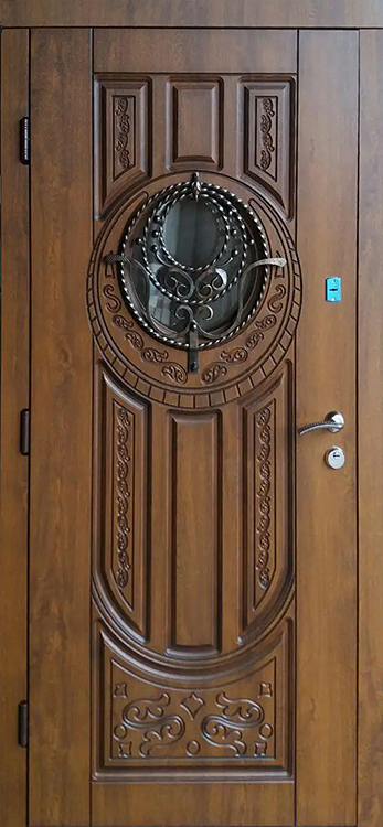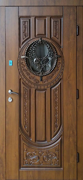 Владельцы коттеджей ценят входные конструкции, которые одинаково подчеркивают статус и защищают от любых внешних факторов. Здесь удачно сочетаются прочный металл и массив дуба, придающий поверхности солидность и благородство. Натуральное дерево сохраняет цвет и текстуру долгие годы, устойчиво к механическим повреждениям и перепадам температуры. Внутри конструкции скрыт стальной каркас толщиной 1,5 мм с ребрами жесткости и противосъёмными блокираторами, что делает полотно практически неприступным. Особое преимущество — терморазрыв коробки и полотна, благодаря которому дверь не промерзает даже в сильные морозы и сохраняет тепло в доме. Именно на этом контрасте надежности и эстетики выделяется железная дверь со стеклом и ковкой №21, украшенная изящными декоративными элементами. Три контура магнитного уплотнения обеспечивают герметичность, а система замков Kale Kilit повышает уровень безопасности, при этом конструкция допускает установку современных умных решений и дополнительных декоративных опций. Железная дверь со стеклом и ковкой №21 от производителя: быстрое изготовление и монтаж в Боровске, индивидуальные размеры, широкий выбор материалов и фурнитуры, официальная гарантия до 10 лет.
