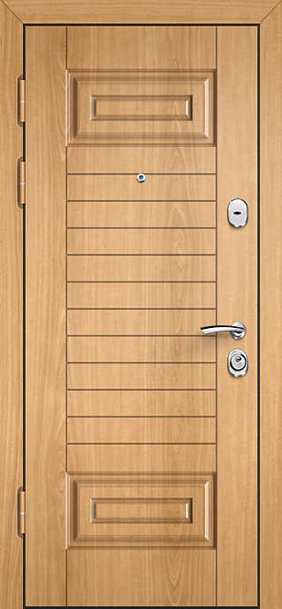 Металлическая конструкция с листом стали толщиной 2 мм и жёстким каркасом из профильной трубы формирует основу, которая не подведёт ни в квартире, ни в офисе. Два контура резинового уплотнителя делают закрывание плотным, уменьшая шум и сквозняки, а наличие блокираторов повышает уровень безопасности. Внешняя и внутренняя отделка выполнена из МДФ ПВХ — материал прочный, устойчивый к мелким повреждениям и сохраняющий аккуратный вид при ежедневной эксплуатации. В центре внимания здесь Железная дверь в квартиру №78, сочетающая надёжность стали и декоративные возможности панелей, которые можно комбинировать по вкусу. Комплект замков представлен сувальдным Просам и цилиндровым Мосрентген, при этом доступна замена на более сложные механизмы вплоть до биометрических систем. Конструкцию легко дополнить зеркалом, стеклопакетом, коваными элементами или видеодомофоном, превратив строгую дверь в удобный и технологичный элемент современного жилья. Железная дверь в квартиру №78 от производителя: быстрое изготовление и монтаж в Боровске, индивидуальные размеры, широкий выбор материалов и фурнитуры, официальная гарантия до 10 лет.