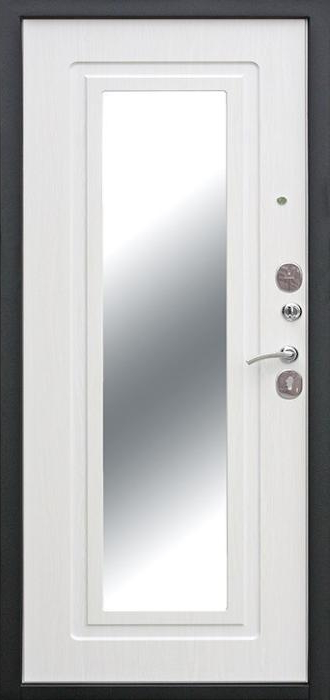 Надёжность металлической двери всегда в приоритете, но когда она получает дополнительное оснащение, результат становится особенно удобным. Входная дверь с зеркалом №78 удачно объединяет прочность конструкции и практичность деталей: массивный каркас из профильной трубы, лист стали толщиной 2 мм и усиленные рёбра жёсткости формируют крепкий защитный барьер, а зеркало на внутренней стороне делает её частью интерьера, экономя место и добавляя визуального простора. Снаружи используется молотковое напыление, устойчивое к царапинам и погодным перепадам, благодаря чему дверь подходит как для квартиры, так и для частного дома. Внутренняя отделка выполнена плитой МДФ, которая выглядит стильно и сохраняет аккуратность даже при активной эксплуатации. Два контура уплотнения помогают защитить помещение от сквозняков, а при необходимости конструкцию можно дополнить шумоизоляцией, современными замками и даже видеодомофоном. Входная дверь с зеркалом №78 от производителя: быстрое изготовление и монтаж в Боровске, индивидуальные размеры, широкий выбор материалов и фурнитуры, официальная гарантия до 10 лет.