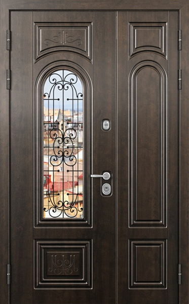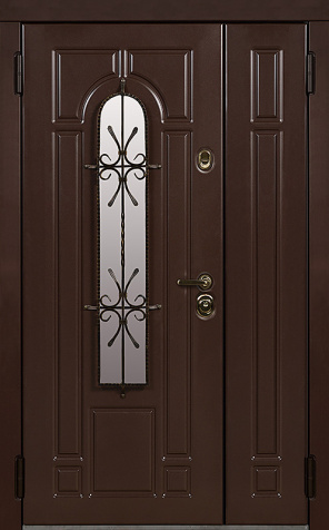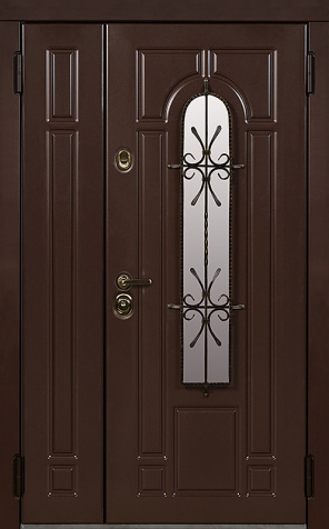 Двупольная стальная дверь со стеклопакетом и кованым узором №24 станет отличным выбором для тех, кто ценит не только безопасность, но и стиль. Внешняя и внутренняя отделка выполнены из МДФ, что придает двери элегантный и современный вид, а также обеспечивает высокую устойчивость к механическим повреждениям и износу. Стеклопакет и кованые элементы добавляют изысканности и уникальности, при этом сохраняя прочность конструкции. Двупольная стальная дверь со стеклопакетом и кованым узором №24 от производителя: быстрое изготовление и монтаж в Боровске, индивидуальные размеры, широкий выбор материалов и фурнитуры, официальная гарантия до 10 лет.