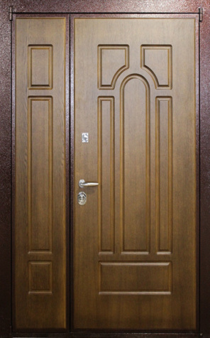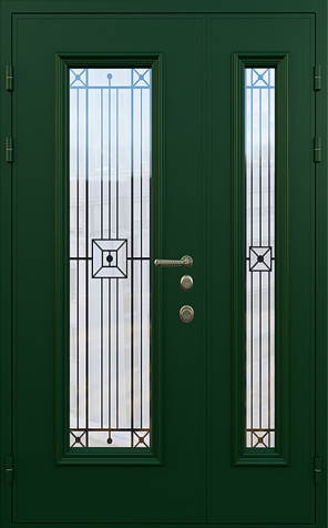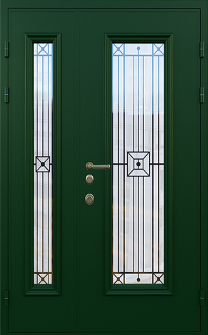 Двухстворчатая входная дверь в стиле лофт №31 привносит в интерьер современный индустриальный стиль, при этом оставаясь прочной и надёжной. Внешняя и внутренняя отделка из МДФ с ПВХ-покрытием делают дверь устойчивой к механическим повреждениям и внешним воздействиям, легко чистятся и долго сохраняют свой первоначальный вид. Ковка и стеклопакет добавляют ей уникальности и элегантности. Каркас двери выполнен из профильной трубы 50х25 мм, с ребрами жёсткости из труб 40х25 мм, что делает конструкцию крепкой и долговечной. Замки "Просам" и "Мосрентген" с тремя ригелями обеспечивают высокий уровень безопасности. Дверь также оснащена резиновым уплотнением с двумя контурами для максимальной герметичности. Возможность добавления стеклопакетов или кованых элементов позволит ещё больше адаптировать дверь под ваши нужды. Современная двухстворчатая входная дверь в стиле лофт №31 от производителя: быстрое изготовление и монтаж в Боровске, индивидуальные размеры, широкий выбор материалов и фурнитуры, официальная гарантия до 10 лет.
