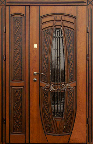 Морозостойкая дверь в широкий проем с глухим полотном стеклом и ковкой №30