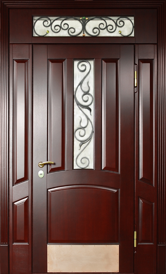 Красивая шпонированная дверь с надежной фурнитурой и ковкой "лоза" №33 идеально дополнит интерьер вашего частного дома или коттеджа. Внешняя и внутренняя отделка выполнены из натурального дерева, что придает двери элегантность и стиль. Профильная труба 50х25 мм используется для каркаса и полотна, а лист металла толщиной 2 мм и ребра жесткости из профильных труб 40х25 мм обеспечивают прочность и долговечность. Несмотря на отсутствие терморазрыва, дверь гарантирует надежную защиту и теплоизоляцию благодаря двум контурам уплотнения. Элементы ковки "лоза" придают двери особое очарование, сочетая практичность с эстетикой. Эта дверь — идеальный выбор для тех, кто ценит стиль, качество и безопасность. Красивая шпонированная дверь с надежной фурнитурой и ковкой "лоза" №33 от производителя: быстрое изготовление и монтаж в Боровске, индивидуальные размеры, широкий выбор материалов и фурнитуры, официальная гарантия до 10 лет.