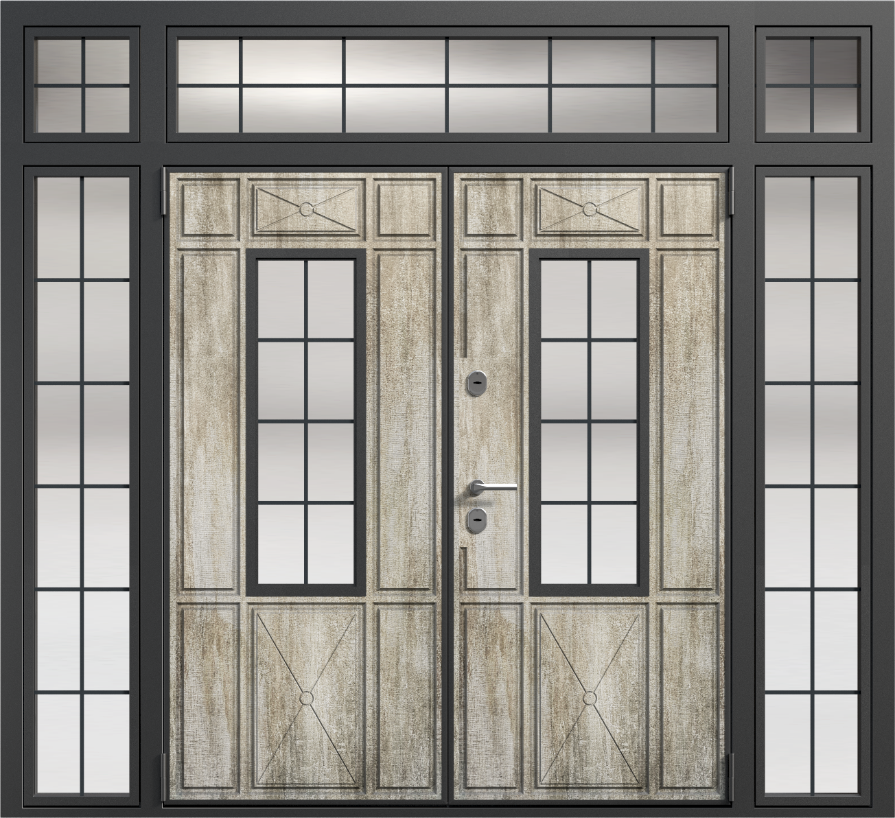 Парадная дверь с остекленной фрамугой №6 — это идеальный выбор для тех, кто ценит элегантность и функциональность. Внешняя отделка из панелей МДФ ПВХ обеспечивает долговечность и устойчивость к внешним воздействиям, что делает эту модель подходящей как для частных домов, так и для офисных помещений. Прочная конструкция с каркасом из профильной трубы 50x25 мм и листом металла толщиной 2 мм гарантирует долговечность и высокую безопасность. Замки Kale Kilit с тремя ригелями обеспечат надежную защиту, а уплотнение с двумя контурами эффективно защитит от шума и холода. Дополнительные элементы, такие как стеклопакеты, зеркала или кованые элементы, можно добавить по вашему желанию, позволяя адаптировать дверь под любые требования. Парадная дверь с остекленной фрамугой №6 от производителя: быстрое изготовление и монтаж в Боровске, индивидуальные размеры, широкий выбор материалов и фурнитуры, официальная гарантия до 10 лет.